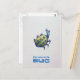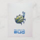 Postcard with a cute blue-green mechanical bug drawn in pencil. The creature resembles a ladybug and has nuts and bolts instead of dots.