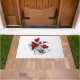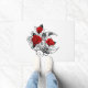 Contour, mechanical crescent moon with gears, decorated with red roses with black spiked stems and leaves on white background. Steampunk