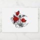 Contour, mechanical crescent moon with gears, decorated with red roses with black spiked stems and leaves on white background. Steampunk