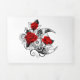 Mechanical Crescent with Red Roses Tri-Fold Holiday Card