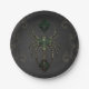 Mechanical elegance, the spider in the dark. Set against a deep, dark grey background, unfolds a mesmerising image of a spider that appears both graceful and sinister. Its body has a skeletal, almost mechanical appearance, enhanced by the use of shimmering green and gold tones. The spider's legs are long and slender, elegant in shape yet menacing in appearance.