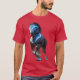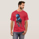I give wanted to give this a 4 instead of a 5 because these Basic DARK T0shirts run unexpectedly SLIM or Narrow. Which is great if you do not have a potbelly, but I have a paunch. It isn't the shirt's fault that I've got a beer belly. The design and shirt itself is a quality cotton shirt. The color is more of a deep purple, but still a very pretty color. The Basic DARK T-shirts run a bit SLIMMER than the Basic Ts. The neck is a fraction narrower (or seems to be narrower) also. I'm a paunchy middle-aged woman and my neck is 12 inches (31cm) thick and the neckline fell about the same as in the photo of the man, and I had the desire to tug it a bit. So if you're a thick necked man or like loose shirts, be aware these are slimmer shirts. Once I get rid of my lockdown paunch it'll look great. The shirt washed well in cold water with no apparent bleeding. We don't have a dryer, so it hung dry. Did not shrink. Love the colors and the design. The design looks smaller on my shirt than it does on the model on-line. But still, it looks good on the shirt. The printing looks as it does on the model, just the size seems fractionally smaller. Washed garment in cold water, hung dry and design appeared unaffected.