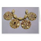 Russian School's Medallions from 'Barmy Collar', with filigree and granulation decoration, Rayazan, 12th century (gold set with jewels and pearls) located at the Kremlin Museums, Moscow, Russia. The Medallions from 'Barmy Collar', with filigree and granulation decoration, Rayazan, 12th century (gold set with jewels and pearls) was created around the 12th century.