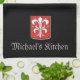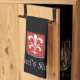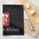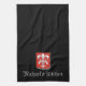 Gorgeous red black and silver towel. Decorated a fleur de lys style graphic and mediaeval style font. Add your/recipient name.