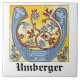 Mediaeval Blue and Red Ivy Illuminated Letter U Tile