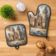 Mediaeval Castle at Sunset with Atmospheric Skies Oven Mitt & Pot Holder Set