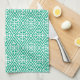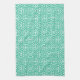 An Art Nouveau, Mediaeval Cross damask textile pattern in turquoise / peacock on a white background kitchen towel
