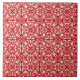 Mediaeval, arabesque tile, damask pattern in white with a deep, Chinese red background