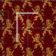 Linda Baysinger Peck’s painting of a gold, mediaeval, heraldic, rampant lion, with dark red fleur de lis tone on tone background. Image © Linda Baysinger Peck All Rights Reserved