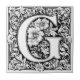 A black and white vector illustration of the letter in an elaborate mediaeval style, created in the style of Albrecht Dürer. The design is a square with a large central floral motif surrounded by symmetrical geometric patterns and swirls.