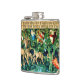 Flask featuring William Morris’ tapestry Verdure with Deer and Shields (1891-1894). A verdant scene of deer drinking from a pool of water and eating from leaves of trees in a green forest. Above them hang the shields of the Knights of the Round Table. A magnificent gift for Arthuriana enthusiasts and Victorian art collectors.