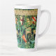 Latte Mug featuring William Morris’ tapestry Verdure with Deer and Shields (1891-1894). A verdant scene of deer drinking from a pool of water and eating from leaves of trees in a green forest. Above them hang the shields of the Knights of the Round Table. A magnificent gift for Arthuriana enthusiasts and Victorian art collectors.