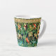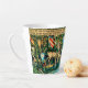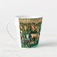 Latte Mug featuring William Morris’ tapestry Verdure with Deer and Shields (1891-1894). A verdant scene of deer drinking from a pool of water and eating from leaves of trees in a green forest. Above them hang the shields of the Knights of the Round Table. A magnificent gift for Arthuriana enthusiasts and Victorian art collectors.