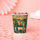 Paper Cups featuring William Morris’ tapestry Verdure with Deer and Shields (1891-1894). A verdant scene of deer drinking from a pool of water and eating from leaves of trees in a green forest. Above them hang the shields of the Knights of the Round Table. A magnificent gift for Arthuriana enthusiasts and Victorian art collectors.
