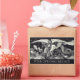 Knight and dragon illustration in black and white vintage image. A knight with wings, holding a shield and sword battles a dragon. Personalise with your name or message in white uppercase font.