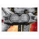 Closeup partial view of the suit of armour of the mediaeval knight and a war hammer. The armour makes the impression of a real knight. Text - No Problems In Two Clicks - right click, left click - added.