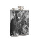 The jousting knights on horsback is one of my favourite paintings, it's titled "The Four Knights of The Forest Festival." I painted it from a photograph that I took when I was at the Forest Festival on Chingford Plains in the UK. The forest festival is held every year and it celebrates everything to do with historic Epping Forest. On two of the years that we attended we were lucky enough to see the re-enactment of a traditional joust between four knights on horseback, each knight is representing his "kingdom." I captured the photograph as the knights were parading around the jousting area and I couldn’t wait to paint it. The Black Knight went on to achieve a glorious victory over the other three knights. I think this original black and white realist mediaeval art picture looks great on this quality flask, I'm sure this historic art image will make an unusual and unique gift for someone special or perhaps you just want to treat yourself to this one of a kind original jousting knights hip flask. This is a customisable hip flask, you can personalise it by adding your own text. The original painting of the four jousting knights on horseback is painted in soft pastels and is titled "The four knights Of The forest Festival." This image has been digitally enhanced to give it a black and white effect.