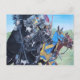 This is one of my favourite paintings, it's titled "The Four Knights of The Forest Festival." I painted it from a photograph that I took when I was at the Forest Festival on Chingford Plains in the UK. The festival is on every year and it celebrates all things to do with historic Epping Forest. On two of the years that we attended we were lucky enough to see the re-enactment of a traditional joust between four knights, each knight was representing his "kingdom." I captured the photograph as the knights were parading around the jousting area and I couldn’t wait to paint it. The Black Knight went on to achieve a glorious victory over the other three knights. I’m sure this original art postcard will bring a smile to the face of everyone you choose to send it to. The original artwork is worked in soft pastel.