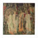 Tile featuring William Morris’ tapestry The Arming and Departure of the Knights (1891-4). The Knights of the Round Table sit on their horses in a forest outside a castle. Beautiful women hand the knights their weapons and shields. A wonderful gift for Arthuriana enthusiasts and Victorian art collectors.