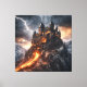 Mediaeval Lightning Mountain Lava Castle Canvas Print