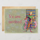 Invites featuring a vintage illustration of a mediaeval minstrel holding a lute and wearing a colourful outfit.