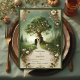 This unique invitation captures the timeless beauty of engraved artwork with a fantasy twist. Inspired by mediaeval woodcut prints and nature’s symbolism, it features an intricate tree surrounded by elegant floral scrolls and forest details. The warm vintage tones and classic layout make it ideal for couples drawn to old-world romance, mythology, or fantasy settings. Whether you're planning a woodland ceremony, a castle wedding, or a celebration rooted in folklore, this design brings storytelling to the heart of your day.