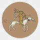 Mediaeval Rabbit Riding Dog and Holding Snail Classic Round Sticker