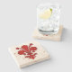 A stone coaster with a red mediaeval Fleur de lis symbol printed on it. The colour will be darker on the finished product. This sample image doesn't do it justice.