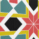 This example is a mediaeval geometric pattern design. It consists of red cross with mustard yellow green blue an black in a square tile pattern. This style is from the Romanesque period.