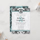 Mediaeval Renaissance Blue Aqua Black and White Pattern Floral Damask Wedding Invitation