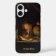 Add the name of a scientist or librarian to a dark phone case featuring an alchemist philosopher at a desk studying an ancient manuscript by candlelight. One hand rests on a world globe at a table with a glass beaker and hourglass. © dotpattern