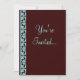 A border of vintage mediaeval elements in light teal blue on a dark chocolate brown invitation template you can personalise with your own custom dates, times and place. Click Customise it to add or remove text, change fonts, background colours and more