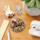 This product features a highly stylised, ornate depiction of a horse in a decorative, floral pattern. The horse is adorned with intricate, richly coloured designs in red, green, gold, and other hues, giving it a regal and festive appearance. Surrounding the horse are vivid, blooming flowers and swirling vines, all illustrated in a similar ornamental style, creating a harmonious and elegant composition. The background has a warm, vintage parchment-like texture, adding to the overall aesthetic appeal of the artwork.
