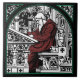 Classic mediaeval woodcut design of a monk at a writing desk with green and burgundy colour accents set on a black background for this display. The background colour is actually transparent so you can change it to match your home décor.