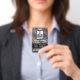 This two-sided badge is fully customisable on both sides. All design elements can be edited to fit a vertical or horizontal badge.