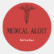 Medical Alert Red Caduceus Symbol Custom Text Classic Round Sticker