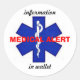medical alert info in wallet sticker 1 1/2 inch round
