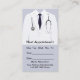 This clever organised medical office appointment cards created in unique vertical format with doctor lab coat and stethoscope graphic in the background and appointment reminder template all in one making it easier for your patients who pick up their next appointment on the way out in the waiting room to see both their appointment and your physical address on the same side.