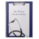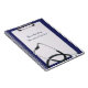 Professional classy business design for medical purposes: a blue leather clipboard with blank paper and a stethoscope. Perfect for any business related to health and healthcare like a medical office, doctor office, clinic or hospital. For hospital staff, physicians, nurses; classy, noble and elegant.