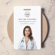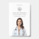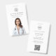 A stylish minimal employee ID name badge with classic typography on a clean simple minimalist white background. The text, logo and QR code can be easily customised for a professional touch to match your clinic branding and blend well into a medical professional setting. A simple, minimalist and contemporary design for a hospital, clinical or medical setting.
