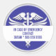 Highlight healthcare issues and next of kin contact details with this modern caduceus on a blue circle design.