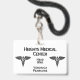 Lanyard, retractable or clip on styles with medical insignia and three text areas. Business Name - employee position and name