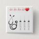 Show off your love for healthcare with this custom button featuring a clean and modern heartbeat, stethoscope, and syringe design. Available in multiple sizes and shapes, this button is perfect for nurses, doctors, or students to wear on bags, lanyards, or uniforms. Printed with vibrant colors and coated with scratch-resistant Mylar, it’s a small but powerful way to share your medical pride.