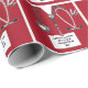 Creative medical school grad gift wrap featuring unique red hospital scrubs, stethoscope and funny Swiss Army knife. Edit text to add physician's name.