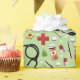 Creative medical-themed gift wrap or party decor featuring healthcare supplies and flowers illustration for doctor, nurse or other healthcare professional.