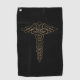This caduceus symbol golf towel is a stylish and unique way for healthcare professionals to showcase their passion for both their work and the sport of golf. The classic caduceus design, with its two serpents and wings, is elegantly displayed in black with a gold outline. The accessory is perfect for those in the medical profession who want to make a statement both on and off the course, and it serves as a constant reminder of the important work that healthcare professionals do every day.