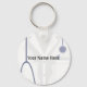 A graphic medical lab jacket design on a keychain. The keychain has a text templates for you personalization. ©2013charmainepaulson