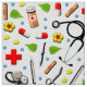 Medical-themed design pattern fabric featuring healthcare supplies for doctor, nurse or physician assistant.