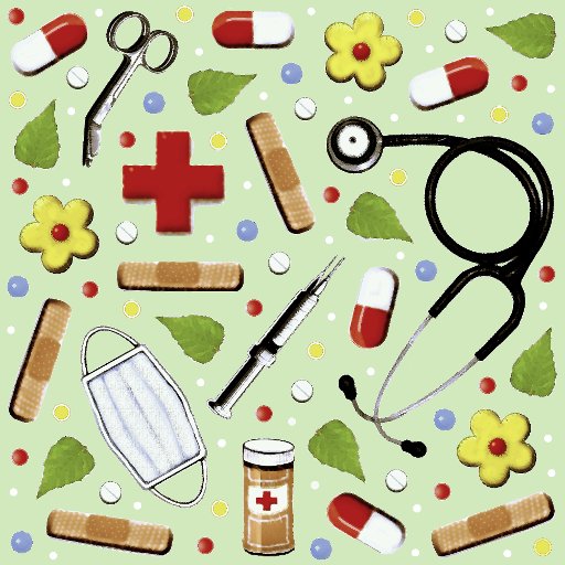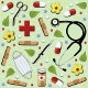 Creative, medical-themed tie featuring healthcare supplies pattern.