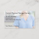 Medical business cards for a Physical Therapist working in a physical therapy clinic designed with a graphic of a Physical Therapy professional lightly printed in the background and classic custom layout.